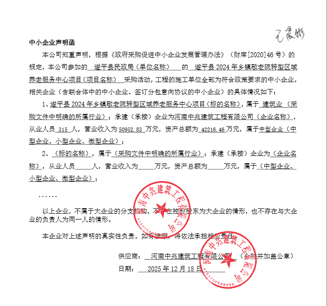 遂平县民政局遂平县2024年乡镇敬老院转型区域养老服务中心项目-成交公告